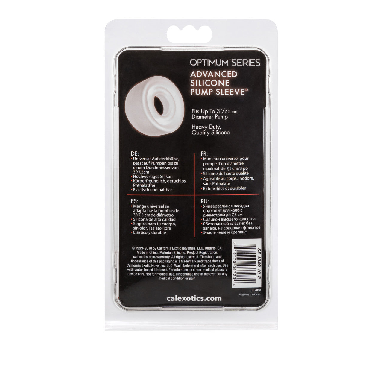 Optimum Series Advanced Silicone Pump Sleeve Clear from California Exotic Novelties.Enjoy a Pumping experience with extreme comfort and protection by adding the Advanced Silicone Pump Sleeve to your favorite pleasure Penis Pump. This flexible, stretchy and protective Sleeve does away with uncomfortable suction for a totally luxurious experience. This heavy duty Sleeve is the Optimum choice for serious Pumpers. This Pump Sleeve fits Cylinders measuring up to 3 inches in diameter. The Donut Sleeve is made of premium, high quality Silicone to give you the comfortable suction experience you have been wishing for. Just slip it onto the base of your favorite device’s Cylinder for added comfort and protection. Pure Silicone provides the ultimate stretchy and durable Ring to fit a variety of Cylinder sizes. This Universal Sleeve is body safe and unscented for your peace of mind and takes your Pumping session to new levels of pleasure. The 3 inches by 1.25 inches Pump Sleeve is just what you need to make your Pumping more satisfying and enjoyable than ever. Heavy duty, high quality, Silicone Pump Sleeves make a great addition to any Penis Pump. Sleeve fits up to 3 inches diameter Pump Cylinder. Penis Pumps sold separately. Safe and pure for body and pleasure. Made using phthalate free, non-toxic materials Silicone. Sleeve measures 3 inches long by 1.25 inches wide. Bulk weight 1.3 ounces. Always clean before and after use plus between partners. Rinse with warm water. Pat dry before storing. Advanced Silicone Pump Sleeve is a registered trademark for California Exotic Novelties. Sex toys and sexual wellness. Categories: Sex Toys for Men, Penis Pumps, Accessories, Male Pump Accessories, Health and Beauty Aids, Sleeves and Rings. 2023.