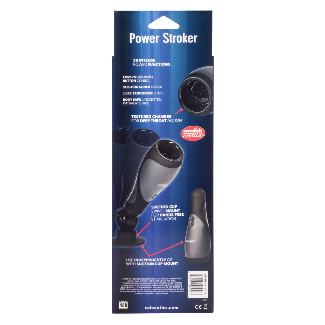 Apollo Power Stroker Black from California Exotic Novelties. Apollo Power Strokers are completely self contained vibrating power Strokers. Offering superior gratification, this stroker has deep throat action for the ultimate in sensation. A removable suction cup base means hands free use if you desire. The suction cup has a swivel mount, providing a variety of positions. The ergonomically shaped sleeve is removable and replaceable, and contains its own textured chamber for additional sensation. Form and function combine for a thrilling sensual experience. For terrific satiation, Apollo Power Strokers are a sleek and sexy choice. The Stroker throbs with 30 incredible functions of intense vibration, pulsation and escalation. You will gratify with ease. The push button control makes operation as simple as it is sensational. This superior Stroker sleeve is crafted of Thermoplastic Rubber TPR, the Case is ABS Plastic with a Polyurethane PU Cote, and the operating button is shaped from ABS Plastic, too. You will be as safe as you are satisfied with the Apollo Power Strokers. So get ready to enjoy exciting stimulation with a sleek and luxurious Power Stroker designed for pure pleasure. Totally self contained power stroker with removable suction cup base. Vibrating pleasure Stroker with deep throat action. Sleeve ergonomically shaped for absolute form and function. 30 incredible functions of vibration, pulsation and escalation. Easy push button control. Optional multi-position hands free suction cup swivel mount included. Safe and pure for body and pleasure made using phthalate free materials Thermoplastic Rubber TPR sleeve, ABS plastic button, ABS plastic with polyurethane PU Cote case. Vibrating sex toy requires 4 AA batteries, not included. Bulk Weight: 15.4 ounces. 3.5 inches by 2.25 inches chamber. 8.5 inches by 3 inches overall. Categories: Male Masturbators, Vibrators, Sex Toys for Men, Solo Masturbators, Masturbation Sleeves. 2023.