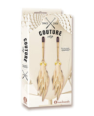 Couture Clips Golden Harvest Luxury Nipple Clamps. Simply the world’s most beautiful nipple clips, licensed to Icon Brands by Paris’ renowned designers, Atelier Elysee. imply the world’s most beautiful nipple clips, licensed to Icon Brands by Paris’ renowned designers, Atelier Elysee. Shown in actual size on their elegant packaging, they feature exquisite pairings of delicate feathers, ornate beading and rich metallics in combinations as stunning as a Parisian sunset. In Golden Harvest the designers have created wonderful, cascading gold leaves, each individual suspended for wonderful, shimmering movement. Wonderful, cascading gold leaves. Exquisite gold electroplating throughout. Fully adjustable; one size fits most. Each leaf individual suspended for wonderful, shimmering movement Shown in actual size on their elegant packaging, they feature exquisite pairings of delicate feathers, ornate beading and rich metallics in combinations as stunning as a Parisian sunset. In Wise One the designers chose to recreate the owl, whimsical, quizzical and ever so unforgettable. Elegant feather tips and down. Exquisite gold electroplating. Fully adjustable; one size fits most. Owl’s eyes and feathers sway as you do! Categories: Lingerie, Clothing, Naughty Role Play, Nipple Play, Sex Toys for Women, Pasties, Accessories. 2023.