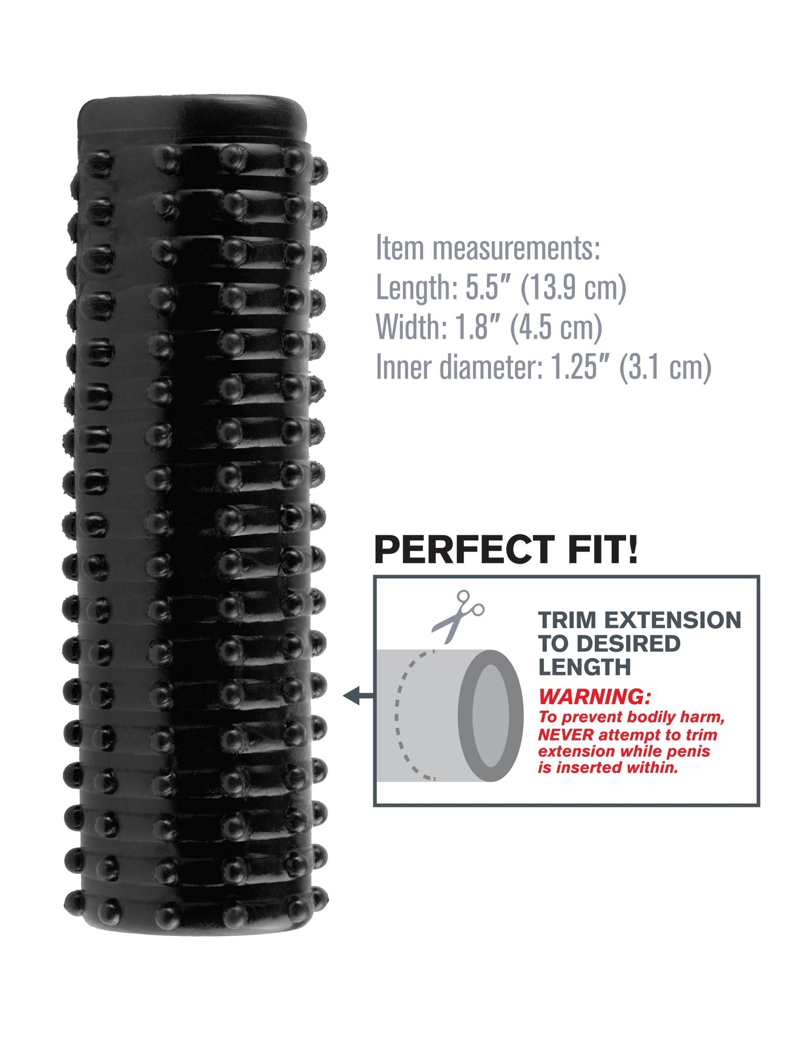 Fantasy X-Tensions Magic Pleasure Sleeve Black from Pipedream Products. Turn your penis into an instant pleasure device with the incredible Fantasy X-Tensions. Now you can be all the man you can be and satisfy your partner with this easy to use, erection enhancer. Developed as a safe, affordable, non-surgical alternative to expensive medical procedures and pills, your Fantasy X-Tension will give you the biggest, thickest, most satisfying pleasure rod you ever imagined! Perfect for men with erectile dysfunction ED and midway performance problems, your new enhancer will deliver the results both partners will love! From the second you slip inside this 5.5 inches enhancement sleeve, you will understand why we call it the Magic Pleasure Sleeve! This super stretchy girth gainer is lined with hundreds of tiny ticklers on the outside, delivering thrilling sensations and satisfying thickness to your partner. The open ended head allows you to feel every sensation and still enjoy the natural touch of your lover. Turn the sleeve inside out and use it as an incredible solo stroker! Trim the sleeve for a perfect fit and the pleasure possibilities are endless! Cleanup is a snap after the fun with the included toy cleaner and warm water. One size fits most. This extension is not a condom. Sleeve features: lined with hundreds of tiny ticklers. Trim for a perfect fit. Turn inside out for a stroker. Phthalate free. Item measurements: length 5.5 inches, width 1.8 inches, inner diameter 1.25 inches. Shown on dildo, not included. Categories: Penis Extensions, Sleeves, Rings, Masturbators, Male Extensions. 2024. New video.