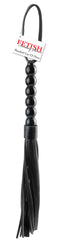 Fetish Fantasy Series Beaded Cat-O-Nine Tails Whip is black 20 inches cat is sure to make your submissive meee-OW! The wood bead handle has a handy strap and the tresses are an easy to use eight inches long. The strap and tresses are made of easy to clean, soft backed vinyl whose tips provide just the right amount of sting. A welcomed addition to any toy bag! Materials: Faux Leather, ABS Plastic, Metal. Package depth 1 inch, width 1.25 inches, height 15.5 inches. Package shipping weight 2.25 ounces. Country of origin China. Harmonized Tariff Schedule HTS Code 3926909987. Fetish Fantasy Beaded Cat-O-Nine Tails Whip is featured in Pipedream Products - Fetish Fantasy Catalog. 90 days warranty. Categories: Bondage, Fetish, Kink, Sex Toys for Couples, Whips, Paddles, Ticklers. 2022.
