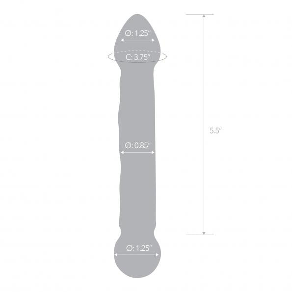 Glas 6.5 inches Full Tip Textured Glass Dildo. Searching for a thrill? The Full Tip Textured Glass Dildo from Glas is an artistically created adult toy that offers a complete, sensual experience. The 6.5 inches Spiral Dildo is designed with ultimate pleasure in mind with a shaft that is decked out with a spiral of raised glass that massages internally, creating a delicious sensation of friction. Unbridled orgasms are sure to result from the stimulation from this sensation packed pleasure tool. Featuring a smooth tear drop shaped tip, this glass dildo features a bulb on the other end to allow for maximum control. The 6.5 inches Spiral Dildo can be used with your favorite lube to enhance its feeling even more by making it easier for the toy to glide in and out of your body. Enjoy this spiral dildo alone or with a partner, as it can be used to enhance all sensual situations. Glass also uniquely retains heat and cold, allowing you to explore the sensations of temperature play.