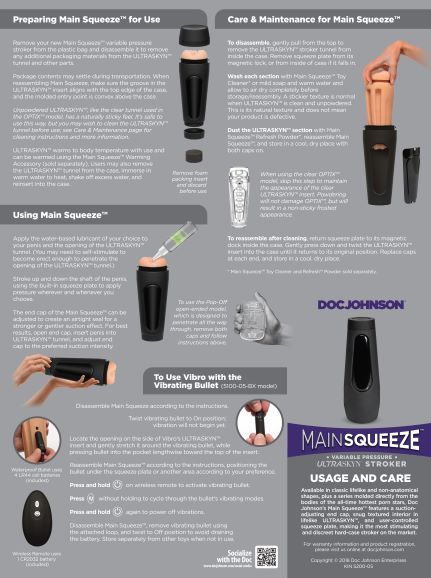 Main Squeeze Blair Williams Pussy Vanilla Beige Stroker. She is always within reach. Doc Johnson’s Main Squeeze line of hard case masturbators starring our most popular porn star molds is designed to put the power in your hands, featuring a squeezable grip that lets you vary the tightness of each stroke and a suction adjusting end cap. Molded directly from sexy girl next door Blair Williams body, this Ultraskyn stroker looks and feels just like thrusting into her perfect pussy. Each Ultraskyn sleeve features a different textured interior, making your experience as unique as each of our sexy Main Squeeze girls. The double cap hard shell design doubles as a discreet travel and storage case, keeping your Main Squeeze fresh and ready for whenever the mood strikes. Size 7.5 inches in total length, 7.5 inches usable length by 3 inches in width. 9.5 inches in circumference. Bulk weight 1.3 pounds. Added new instructions page of how to use. Plus one page with all the other Main Squeeze Strokers and Main Squeeze products. 2020.