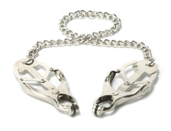 XR Brands Master Series Sterling Monarch Nipple Clamps. Master your domain. Explore an abyss of taboo fantasies with Master Series! Submit to your deviant desires with this timeless classic. The Sterling Monarch Nipple Vice from Master Series provides a light initial sensation until the chain is pulled. They become increasingly harsh, clamping down harder as more pressure is pulled on the chain. The clover style mechanism makes the Monarch grip tighter, unyielding on sensitive flesh. Recommended for those with moderate to heavy BDSM experience, or an insatiable appetite for a little pain. Measurements: Clamps are 3.5 inches long, 1.5 inches wide, Connecting chain is 12 inches long. Material: Metal. Spanning all levels and niches of BDSM and Fetish, this devious collection includes essentials for chastity, puppy play, Master, Slave, medical fetish and much more! Discover cutting edge toys, tools, and devices that will make your inner Dominant or submissive tremble with excitement. Craft an unforgettable play scene with unique accessories from Master Series. Submit to your deviant desires with this timeless classic. Designed to get tighter as you pull on the chain. These clamps have a strong grip. The clover style mechanism makes the grip tighter, unyielding on sensitive flesh. Great for use on nipples. But we use them on other body parts as well! Categories: Master Series, Bondage, Fetish, Kink, Nipple Play, Sex Toys for Women, Sex Toys for Couples, Bondage Kits, Kinky Sets. 2023.