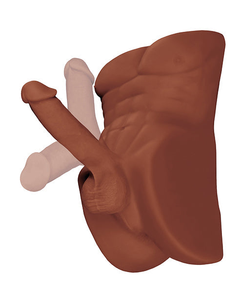 PDX Extreme Plus Perfect Ride Brown from Pipedream Products. If you like trying new positions, then the Perfect Ride is exactly what you have been waiting for! With its huge poseable cock, you can change the direction and angle of it to your liking. Point it up, down, left, or right, it does not matter! It is completely up to you how you want to get screwed, and you will always be able to find the perfect position to ride this incredibly life like mega masturbator. You will also love the new EZ Bang Design. The hips are raised higher to make sure you can ride it in comfort, while the angle of the cock hits your sweet spot over and over again. And when it is your turn to screw, check out the raised anal cavity that makes your job even easier. It’s the perfect height and angle to stick your dick in without cramping up! Made from our incredibly realistic feeling Fanta Flesh, this 10 pounds mega masturbator is the most life like slam piece ever created. The soft, supple Fanta Flesh material warms to your body temperature and feels just like the real thing, only better! And when you are done, clean up is a snap with antibacterial cleaner and warm water.
