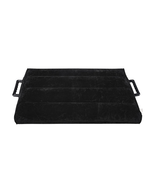 Pivort Inflatable Positioner from Sportsheets. Keeping couples together. Revolutionary positioing products. Experience versatility and support at every angle with the Pivot Inflatable Positioner. Shaped to help you experience pleasure to the fullest, the inflatable core is comfortable and lined with a soft velvet coat while being firm enough to support the needs of every body type. Sturdy handles allow for you or your partner to hold on for added stability and control without obstructing any positions. Made of a durable Vinyl, the Inflatable Positioner can hold up to 300 pounds with a non-slip finish to help keep it in place during even the roughest play. Dimensions 11.25 inches in height by 7 inches in width by 3.5 inches in depth. Product details: Materials Nylon, Polyester, POM Plastic, Polypropylene. Color: Black.