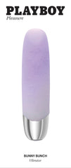 Playboy Bunny Bunch Purple Vibrator from Evolved Novelties. Freedom to Play. Playboy’s Bunny Bunch Vibrator is always ready to hop to it to please you. This luxurious Bullet Vibrator is soft and squishy, crafted with a dual layered material that feels both sumptuous and silky. With a lipstick tip for targeted vibrations, the shaft is stylishly covered with the Playboy Bunny Bunch Vibrator and a gorgeous opal to white color gradient that looks great on the nightstand. Amp up your pleasure with 7 speeds and rhythms, even under water as it is fully submersible. Panel details: Play with me key feature: Soft and Squishy texture, Targeted Vibrations. Vibration7 vibration speeds and rhythms. Materials: body safe Silicone, Phthalate free and Latex free. Waterproof. Submersible. Warranty Five years. Magnetic Rechargeable. USB cable included. Size