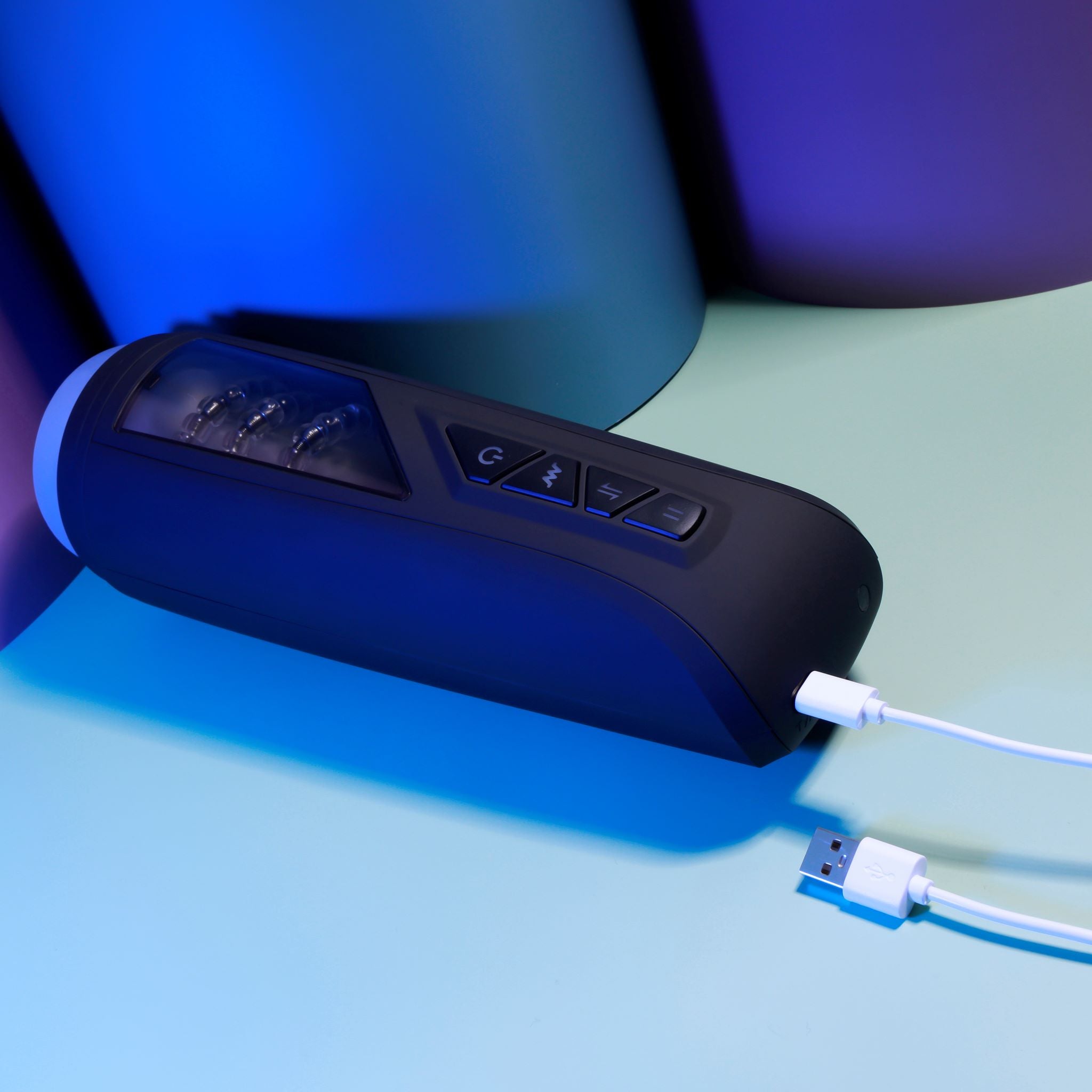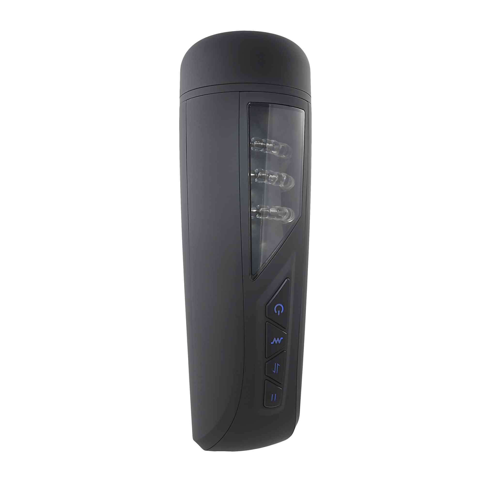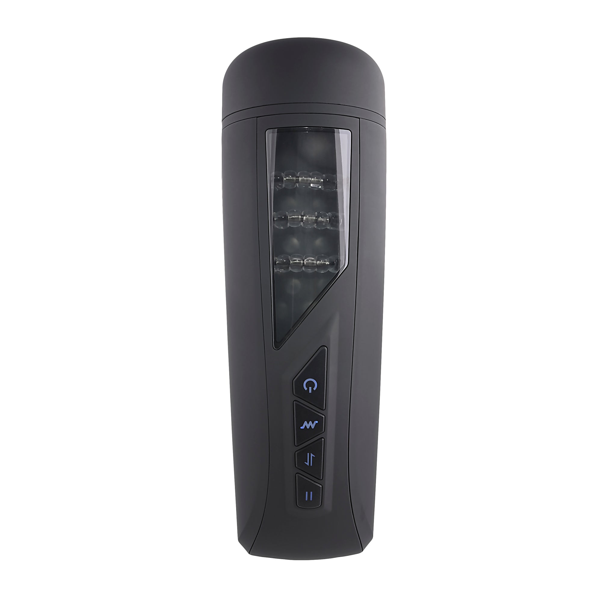 Specifications: of Vibrating Beaded Stroker with Voyeur Chamber: Sleeve material Thermoplastic Elastomers TPE, Phthalate free and Latex free. Container: ABS Plastic. Size height 10.7 inches, depth 3.45 inches, width 3.45 inches. Insertion length 6 inches, diameter 2 inches. Supple, textured inner channel. Beaded rings move up and down the shaft. 7 vibrating speeds and rhythms. Press power button for 3 seconds to turn on/off. USB Rechargeable. 40 minutes run time on high power. 70 minutes run time on low power. Charging time 180 minutes. Splashproof for easy cleaning and use in the shower. Compatible with a water based personal lubricant. Before and after use wash with a toy cleaner, pat dry before storing. 5 years manufacturer's warranty. Categories: Male Masturbators, Vibrators, Sex Toys for Men, Rechargeable Vibrators, Solo Masturbators. Play with me. Playboy and Rabbit Head design are registered trademarks of Playboy International. All rights reserved. 2023.