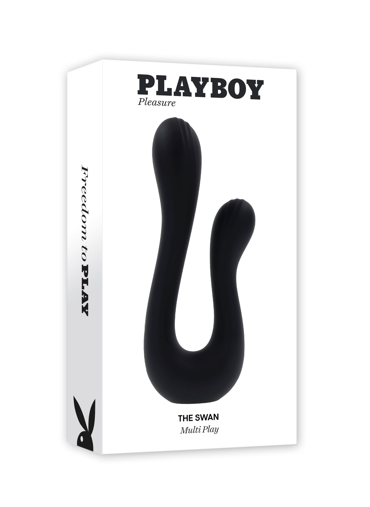 Playboy The Swan from Evolved Novelties. Freedom to Play: Pleasure has never been so elegant. The Swan, part of the Multi Play series, has two gently curved and flexible shafts that move with your body, the smaller shaft staying in constant contact with the clitoris or perineum while the longer shaft moves within you. Enjoy the power of 10 vibrating speeds and rhythms in each shaft, made even more stimulating by the bulbous, textured heads. A unique flat base allows the sex toy to stand conveniently upright on your nightstand. Panel details: Play with me key feature: Dual shafts, 2 vibrating motors. Vibration: 10 vibrating speeds and rhythms. Materials: body safe Silicone. Both Phthalate free and Latex free. Waterproof vibrations. 5 years warranty.