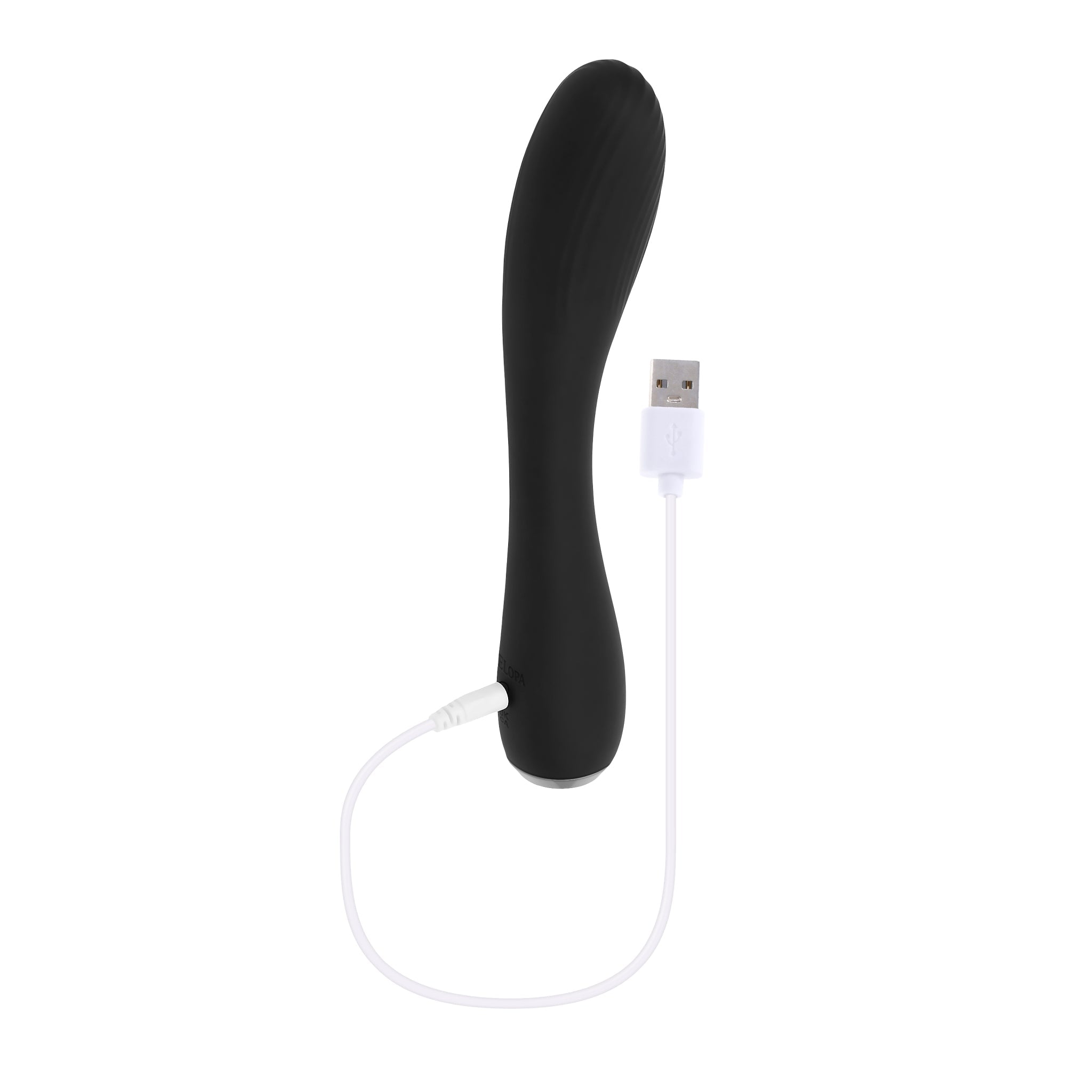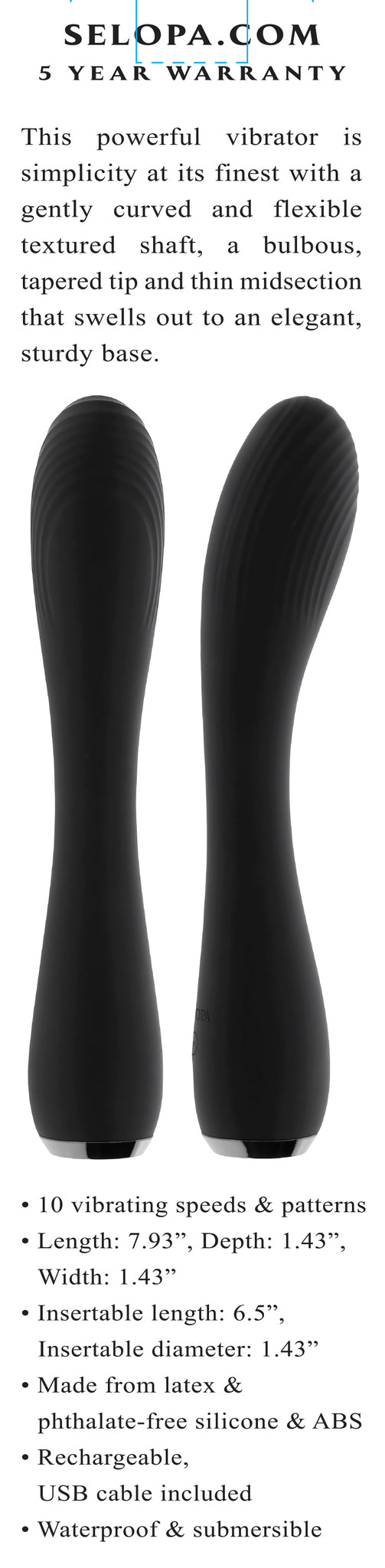 This powerful vibrator is simplicity at its finest with a gently curved and flexible textured shaft, a bulbous, tapered tip and thin midsection that swells out to an elegant, sturdy base.