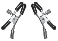 From Sportsheets Sex and Mischief line Nipple Clamps feature 2 fully adjustable multi-use basic clamps for him or her. Soft pads for added comfort and can be removed. Tension adjustments make them perfect for nipple stimulation as well as many other sensitive areas. Details: a versatile classic for nipple play. Elevate your erotic ecstasy with painful pleasure! Rubber tipped for comfort, these nipple clamps are a great introductory accessory for those who lean towards masochist or submissive roles, though anyone can enjoy the teasing torment of nipple toys. Thumb screws allow you to adjust the pressure on each sensitive bud as you inch closer and closer to orgasmic bliss! Nipple Clamps specifications materials: nickel free metal, PVC, ABS plastic. Adjustable nipple clamps via thumb screws. Limited Lifetime Warranty, Sportsheets will replace any defective product. If the product is not available, Sportsheets will replace it with a similar product of similar function. No video. 2021.
