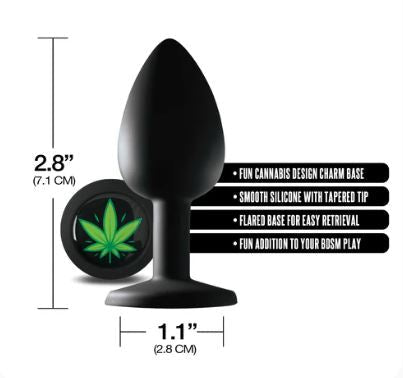 Get your butt in on the fun with the Stoner Vibes Chronic Collection Small Butt Plug! Its smooth, body-safe silicone design and tapered tip ensure comfortable insertion while the flared base allows for easy removal. Featuring a fun cannabis leaf charm for a playful touch. Perfect for those new to anal play at 2.8" tall and 1.1" wide. A perfect addition to the Stoner Vibes BDSM Collection!