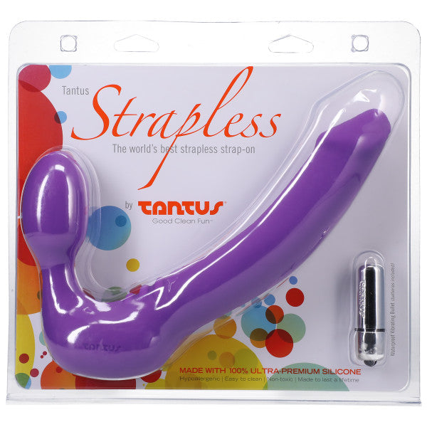 Strapless Classic Purple Dildo from Tantus Silicone. You use the bulb end to hold the Tantus Strapless in place, using your internal muscles and with the new velvet surface, it is easier than ever to hold on to. The shaft end of the dildo comes up at a natural angle allowing you great penetration of a partner. No muss no fuss. Wearing the Tantus Strapless is a very different strap on experience. Tantus recommends you wear it around the house getting used to your new center of gravity, how it moves and how you can control the movement before you try it with your partner. Vibrator single speed removable waterproof Bullet Vibe uses 3 AG13/LR44 type batteries. Safe for your body. Made from 100% Ultra Premium Silicone. Bullet vibrator made from ABS Plastic. Easy to clean. Eco-friendly, hypoallergenic, hygienic. Boilable, bleachable and dishwasher safe top shelf. Size Bulb diameter 1.5 inches, length 2.5 inches. Dildo diameter 1.5 inches, length 6 inches. Only use water based personal lubricant. Never a Silicone based lube. Categories: Sex Toys for Couples, Strap-Ons, Harnesses, Dildos and Dongs, Sex Toys for Women. Restricted, Amazon Restricted.