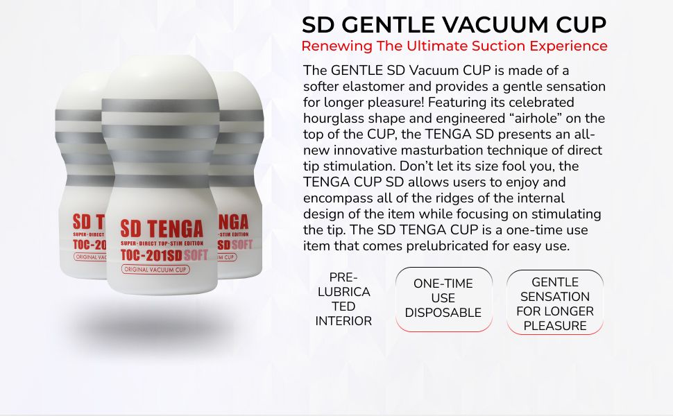 Tenga SD Original Vacuum Cup Gentle super direct top stimulation edition size. More pleasure to more people. Discover our cup masturbator collection for men. Feel the real things with the fleshy touch feeling of cup masturbators. These masturbators for men comes with a different and unique textured sleeve interiors for a wide variety of pleasurable sensations! 2.7 inches in depth by 2.7 inches in width by 4.72 inches in height. Insertion length approximately 4.3 inches. Insertion width approximately 2.4 iinches. Bulk weight 0.25 pound. Other specifications: disposable stroker, prelubricated. Materials: Insert Sleeve Thermoplastic Elastomer TPE. Casing Polyethylene PE. Lubricant Ring Polyurethane PU. Lubricant Ring Lubricant: Water, Glycerin, Propylene Glycol, Hydroxyethylcellulose, Sodium Polyacrylate, Phenoxyethanol, Methylparaben, Hydroxypropyl Beta Cyclodextrin, IPBC. Internal Lubricant: Water, Glycerin, Sodium Polyacrylate, Phenoxyethanol, Methylparaben, Hydroxypropyl Beta Cyclodextrin, IPBC. Please note the lubricants are certified by EU Directive 76/768/EEC toxicological assessment. Categories: Male Masturbators, Sex Toys for Men, Sleeves and Rings, Masturbators. Video. Restricted, Amazon Restricted. 2023.