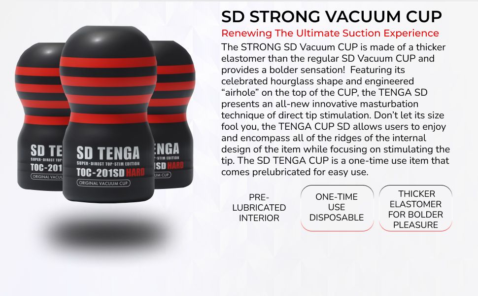 Tenga SD Original Vacuum Cup Strong super direct top stimulation edition size. More pleasure to more people. Discover our cup masturbator collection for men. Feel the real things with the fleshy touch feeling of cup masturbators.These masturbators for men comes with a different and unique textured sleeve interiors for a wide variety of pleasurable sensations! 2.7 inches in depth by 2.7 inches in width by 4.72 inches in height. Insertion length approximately 4.3 inches. Insertion width approximately 2.4 iinches. Bulk weight 0.25 pound. Other specifications: disposable stroker, prelubricated. Materials: Insert Sleeve Thermoplastic Elastomer TPE. Casing Polyethylene PE. Lubricant Ring Polyurethane PU. Lubricant Ring Lubricant: Water, Glycerin, Propylene Glycol, Hydroxyethylcellulose, Sodium Polyacrylate, Phenoxyethanol, Methylparaben, Hydroxypropyl Beta Cyclodextrin, IPBC. Internal Lubricant: Water, Glycerin, Sodium Polyacrylate, Phenoxyethanol, Methylparaben, Hydroxypropyl Beta Cyclodextrin, IPBC. Please note the lubricants are certified by EU Directive 76/768/EEC toxicological assessment. Categories: Male Masturbators, Sex Toys for Men, Sleeves and Rings, Masturbators. Video. Restricted, Amazon Restricted. 2023.