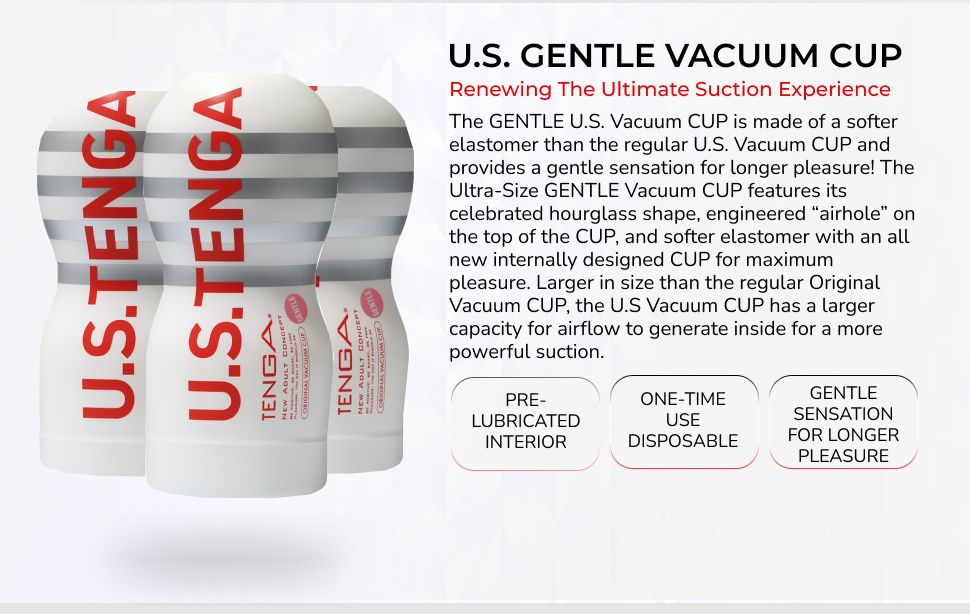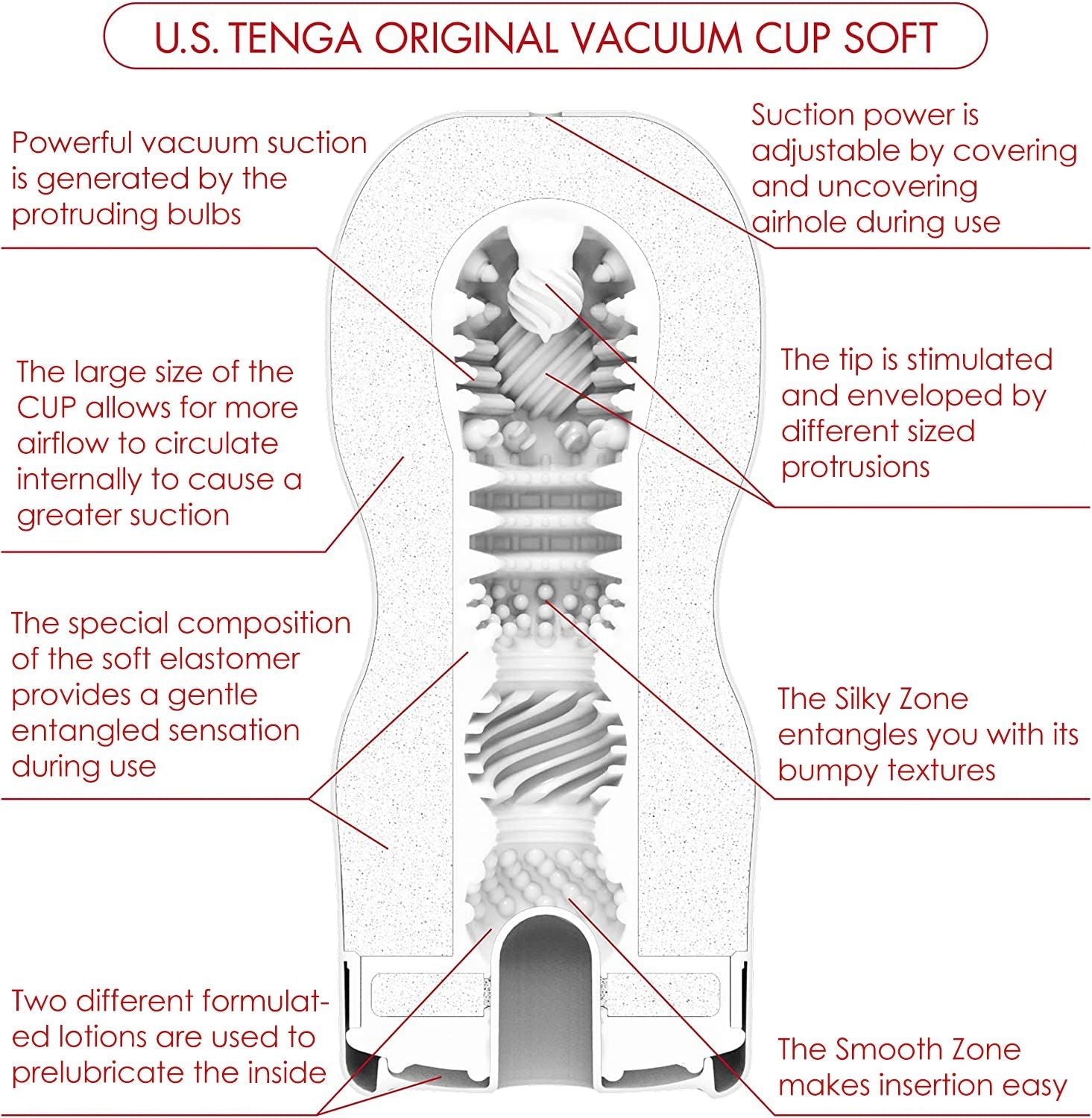 Tenga U.S. Original Vaccum Cup Gentle. The new Original Vacuum Cup features it is celebrated hour glass shape and valve structure that provide constriction and amazing suction, with all new internal details upgraded from 15 years of engineering advancement. Special valves create a virtual vacuum inside the cup to deliver an amazing sucking sensation. Also, the unique pinched in shape helps to achieve an unparalleled tightness. These advantages features combine with an arousing slurping sound and vibration to give you the feeling that you are enjoying a real deep throat experience. This product is a disposable and not intended for repeated use. Size 2.72 inches in depth, 2.72 inches in width by 6.10 inches. Insertion length 5.80 inches by insertion 2.58 inches in width 2.58 inches. Weight 0.27 pound. Other specifications: disposable, prelubricated. Materials: insert sleeve: Thermoplastic Elastomer TPE. Please note how to use stroker is from another cup. Categories: Health and Beauty Aids, Male Masturbators, Sex Toys for Men, Solo Masturbators. Video. Restricted, Amazon Restricted. 2023.