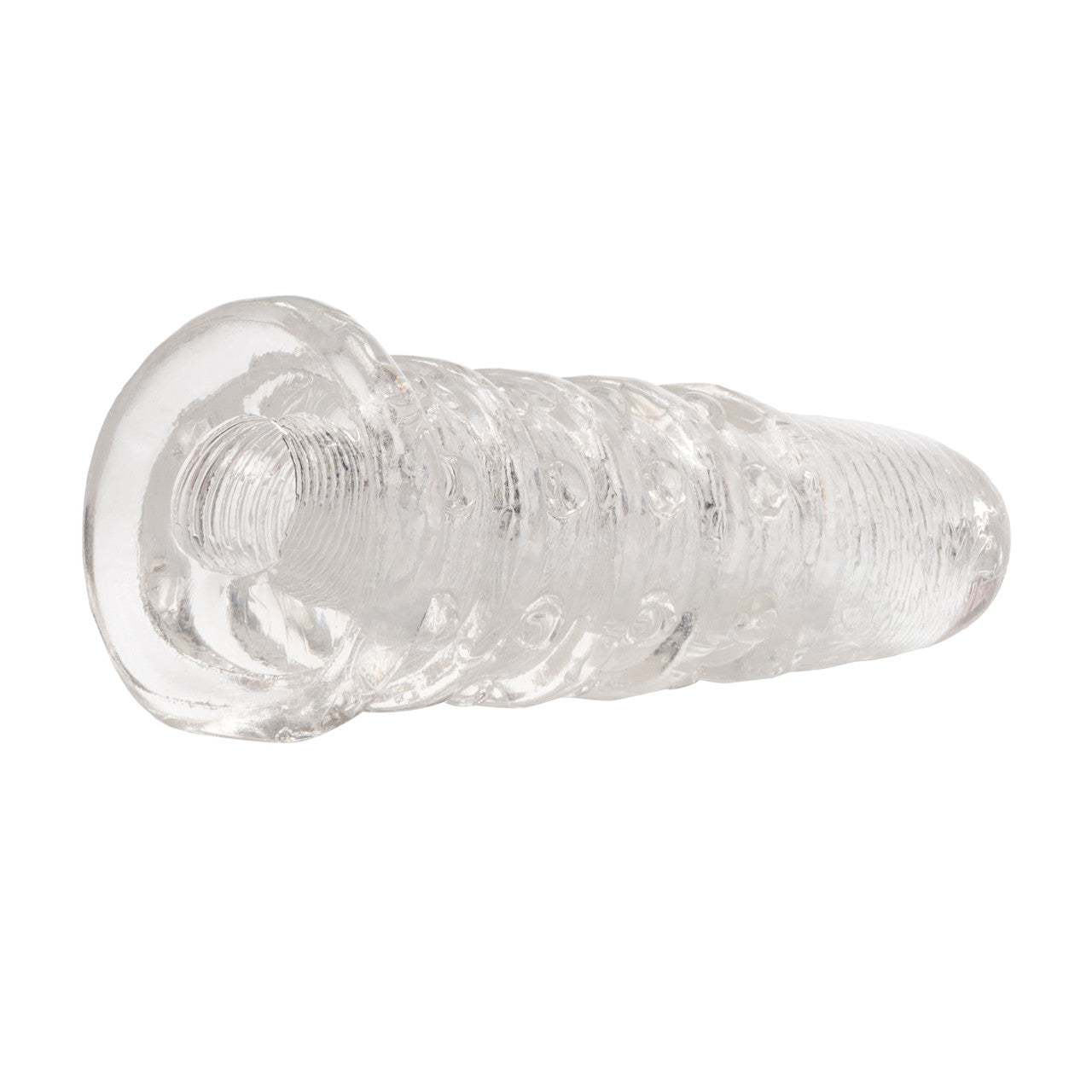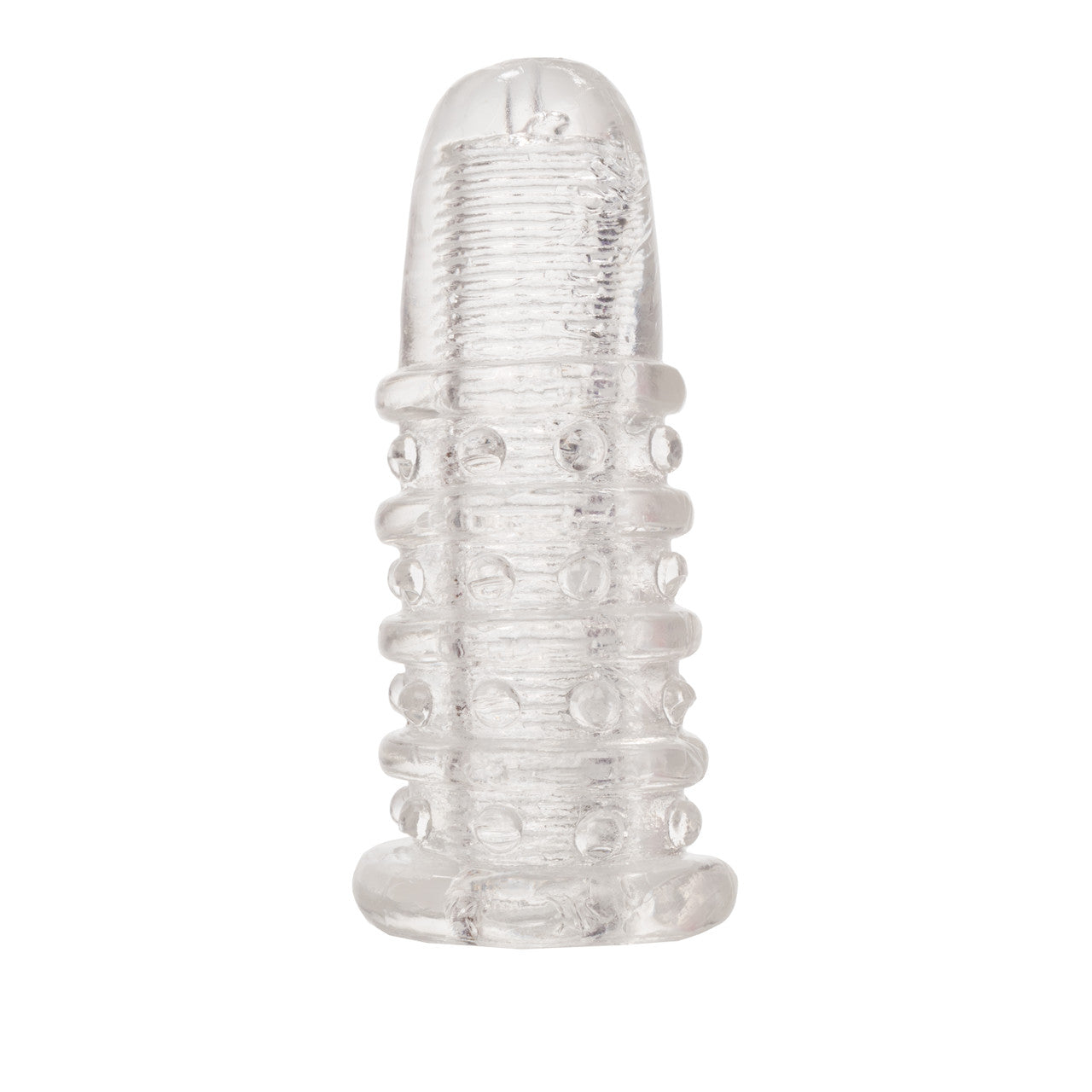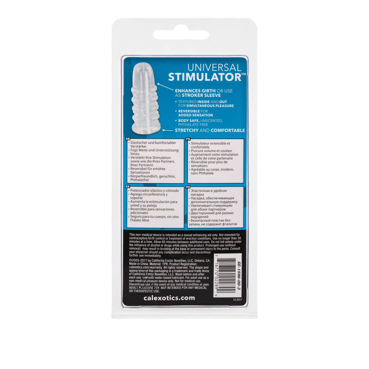 Universal Stimulator Extension from California Exotic Novelties. Enhance your intimate erotic encounters with the easy to use Universal Stimulator. The multi-purpose, Reversible Stimulator is designed for maximum sensual pleasure and delivers intensified orgasmic satisfaction. The Versatile Masturbator is the perfect exotic companion for extended solo play or couple’s fantasy fun. Slip the super stretchy and soft stimulation Sleeve over an erect penis to enlarge and super size, or use it as a masturbator to create mind blowing ecstasy. The discreet, transparent Universal Stimulator is made from soft and stretchy Senso Thermoplastic Rubber TPR, which is soft and stretchy to satisfy every man. The Reversible Textured Sleeve is ribbed, pleasure ridged and sensually swirled for ultimate tantalizing pleasure. This Sleeve offers a great variety of enjoyment as a Masturbator or a Sleeve, which can be used with a partner, as the textured pleasure ridges will serve to create excitement and enjoyment in every movement. The ultra stretchy The personal Enhancer is perfect for maximizing size, arousal and climax explosions. The Versatile Sleeve makes an ideal addition to your intimate toy collection. Use the multi-purpose masturbator to elevate sensuous self gratification experiences, and to play out your wild secret fantasies. Before and after every use, clean the stimulator sleeve with a toy cleaner spray or warm, soapy water. made of ultra stretchy Senso a multiple purpose Sleeve Enhancer and Reversible Masturbator. Safe and pure for body and pleasure. Made using phthalate free, non-toxic materials Senso Thermoplastic Rubber TPR. Sleeve measures 4.5 inches long by 1.5 inches. Always clean before and after use plus between partners. Superior lubricity personal lubricant is water based. Latex condom compatible. Universal Stimulator is a register trademark for California Exotic Novelties. Sex toys and sexual wellness. Categories: Penis Extensions, Male Extensions, Male Masturbator, Penis Sleeves, French Ticklers. 2023.