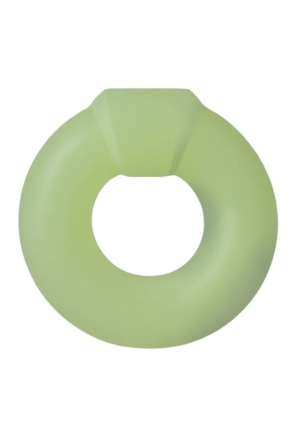 From Doc Johnson, This classic circle shape has an additional knob that applies pressure behind the scrotum for an ultimate climax. The Mega Ring's phthalate-free, body-safe, glow-in-the-dark material keeps the bedroom aglow as long as you last.