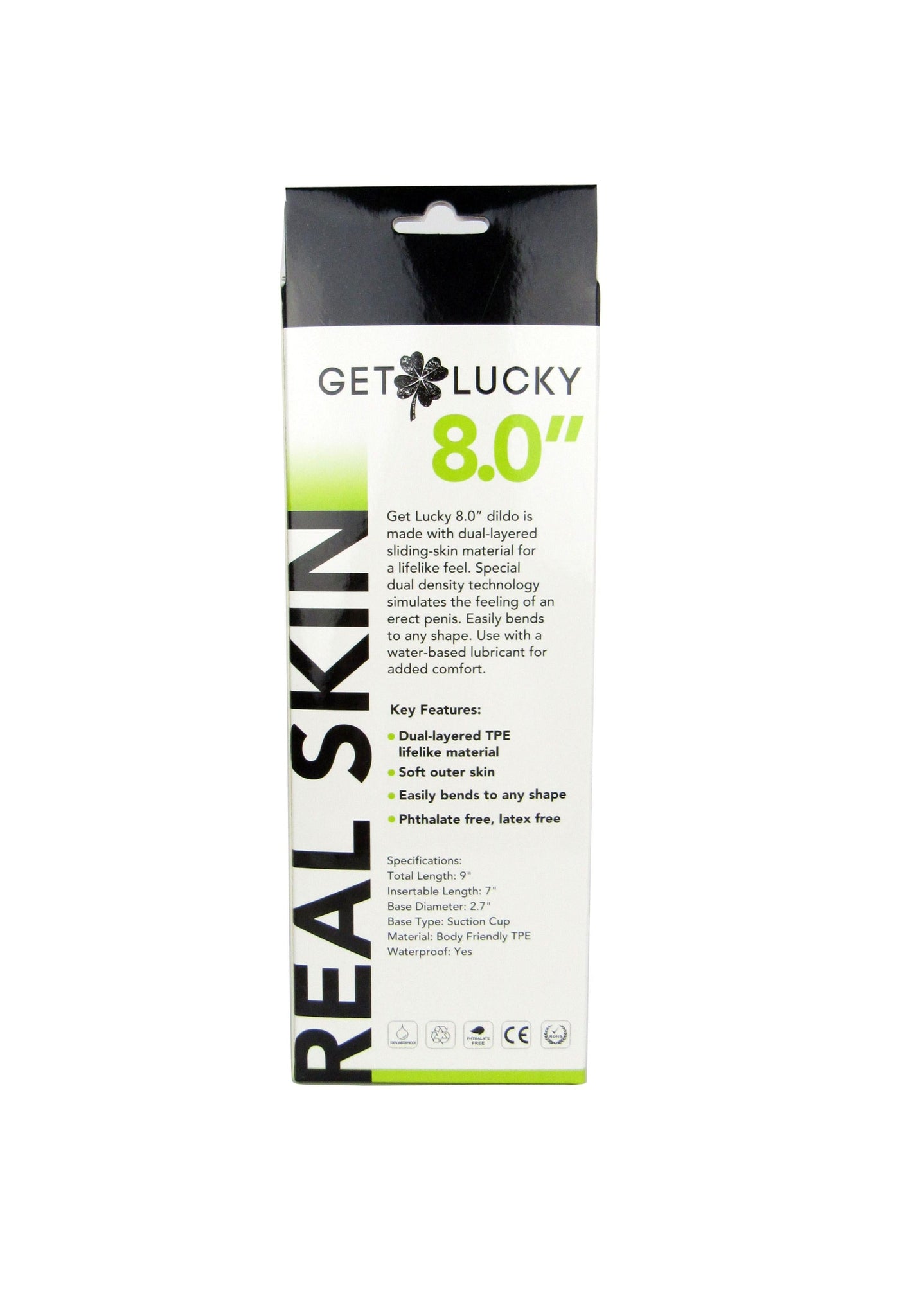 Shibari Get Lucky 8 inches Real Skin Light Brown Dildo from Thank Me Now. Shibari Get Lucky is a perfectly orgasmic experience. Easily bends to any shape. Realistic dildo features a suction cup. Can be placed on a clean, dry surface. Harness compatible. Made using body safe phthalate free materials Thermoplastic Elastomers TPE. Size 9 total inches, 7 inches insertion length by 2.7 inches in width. Only use a water based personal lubricant.